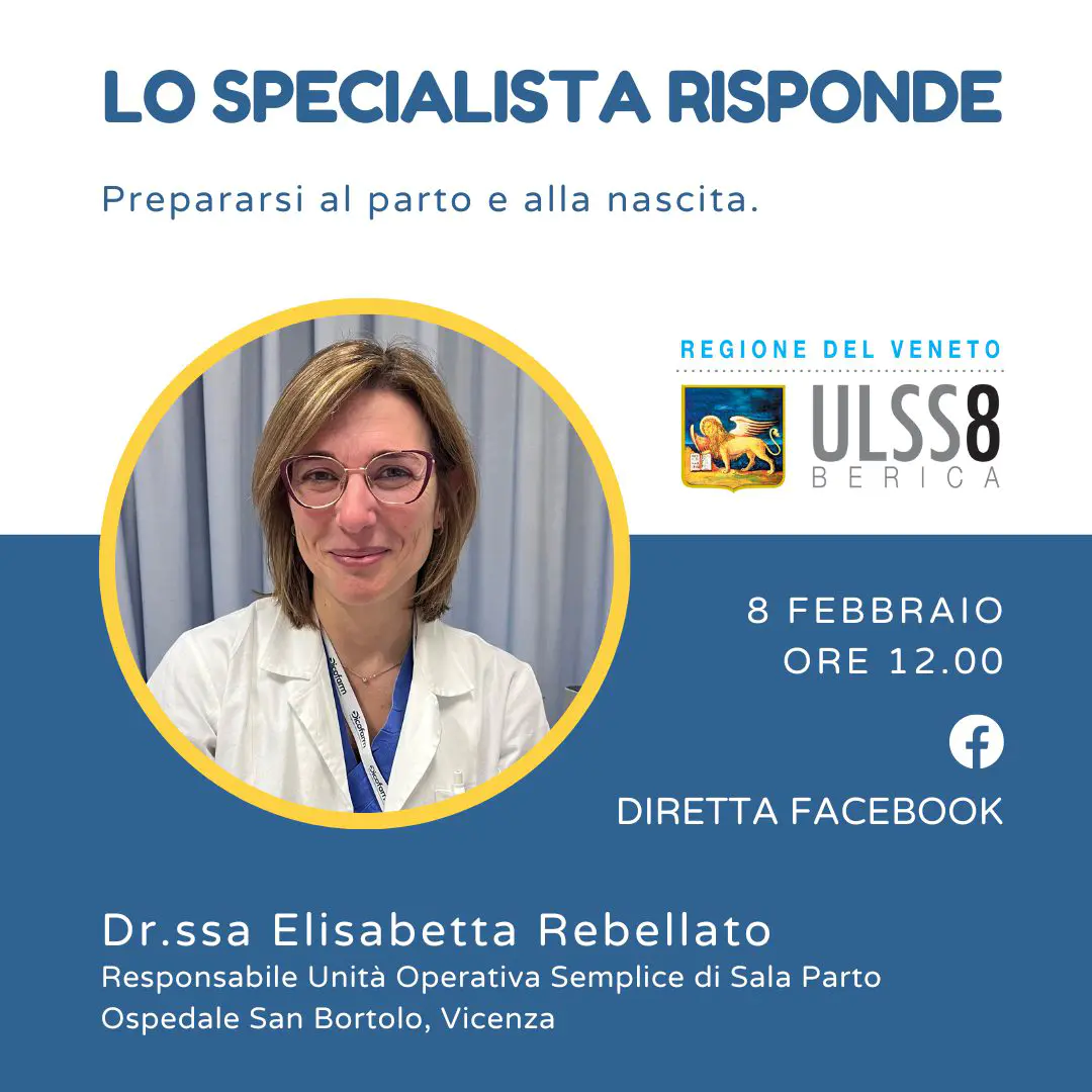 Appuntamento con “Lo Specialista Risponde”. In questa diretta parliamo di come prepararsi al parto e alla nascita con la Dott.ssa Elisabetta Rebellato, Responsabile Unità Operativa Semplice di Sala Parto Ospedale San Bortolo, Vicenza.